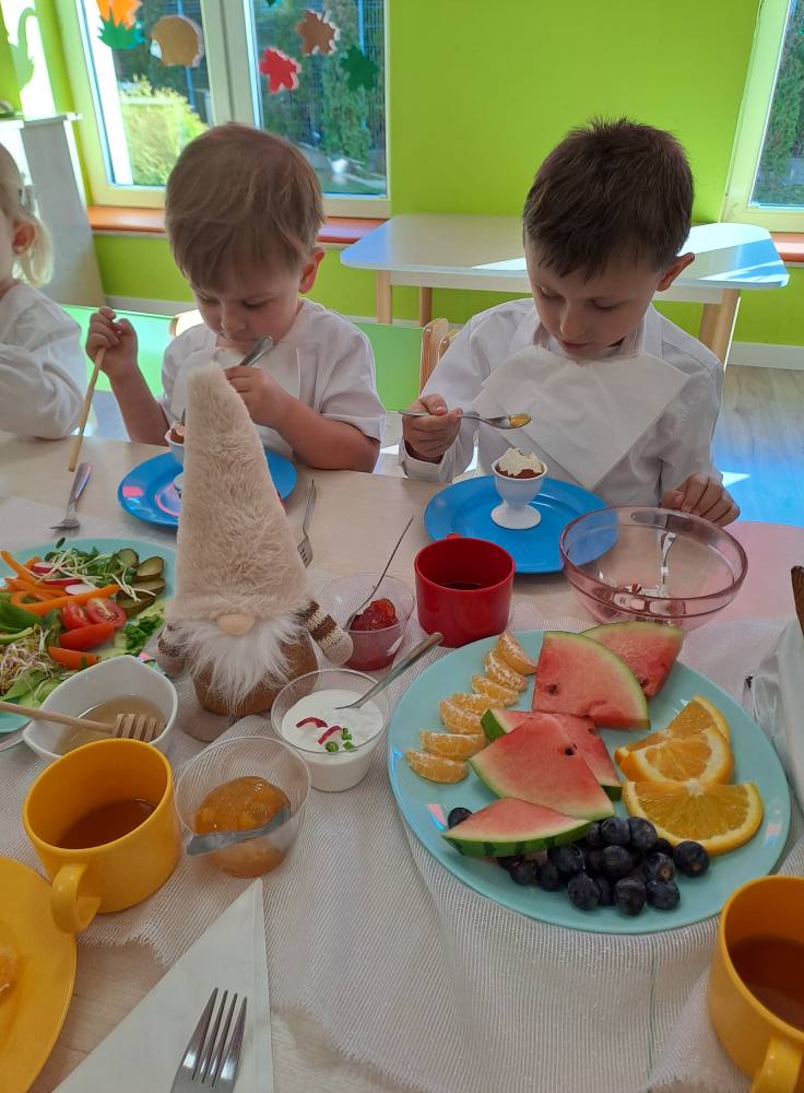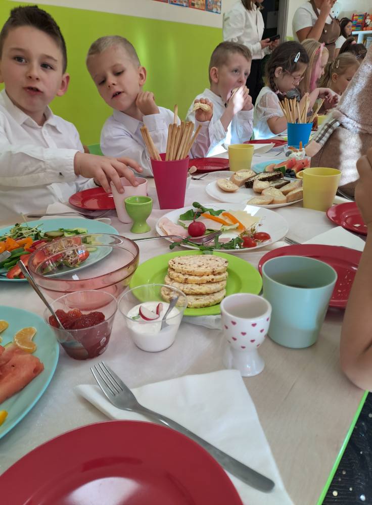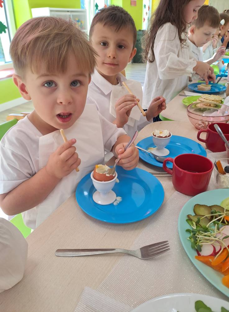 Dzień zdrowego śniadania to była doskonała okazja do tego aby porozmawiać z dzieciakami o tym jak ważne jest wspólne spożywanie posiłków i zdrowe nawyki żywieniowe. Dodaliśmy sobie dziś energii na cały weekend. Wyzwaniem dla przedszkolaków było zjedzenie jajka na miękko ;) dali radę. Wszystko było pyszne, zdrowe i kolorowe. Wspólne śniadania powinniśmy jak najczęściej celebrować przy rodzinnym stole nie tylko w przedszkolu.