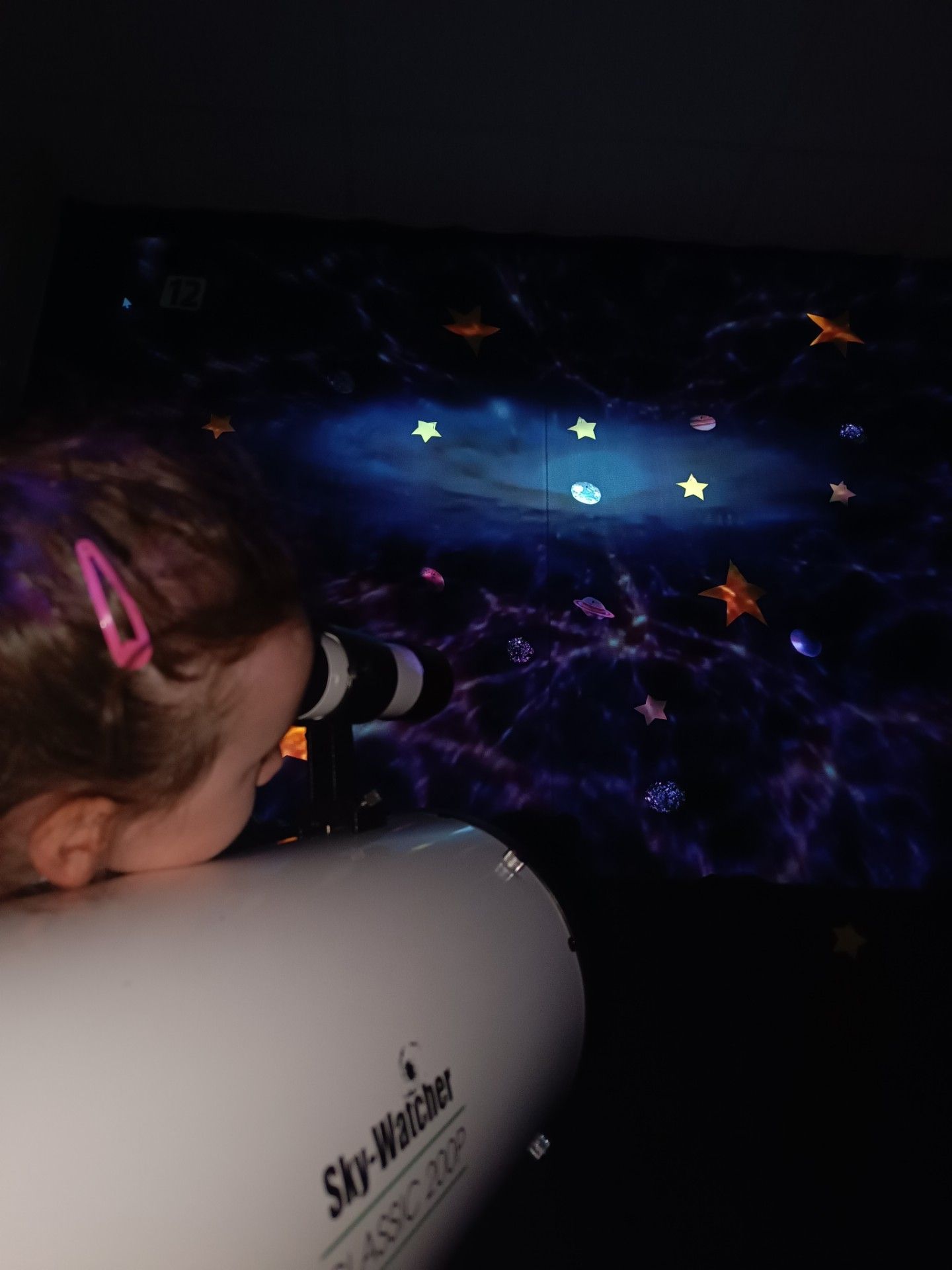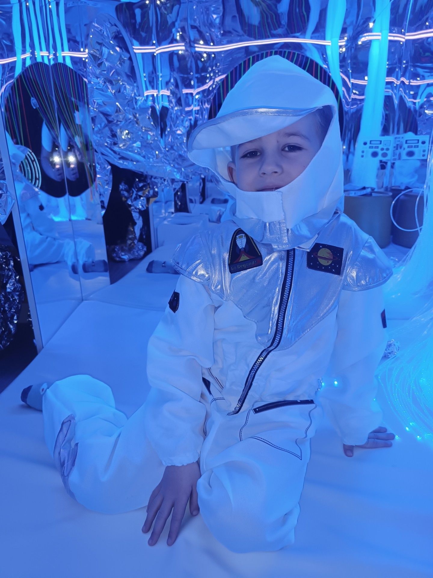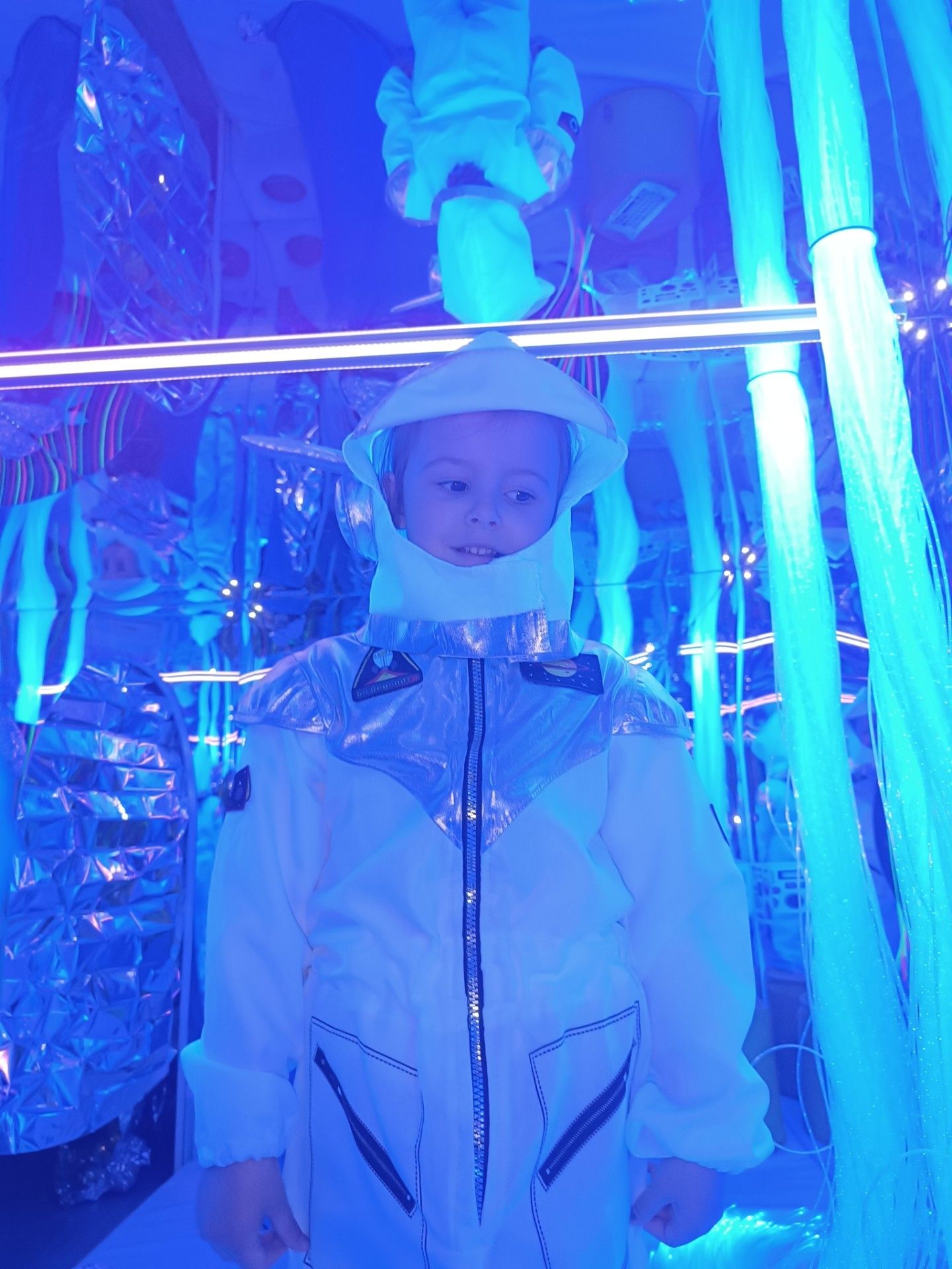 I polecieliśmy w kosmos!!! Sala maluchów zamieniła się w stację kosmiczną. mali kosmonauci mogli przymierzyć kosmiczny kombinezon, popatrzeć na gwiazdy przez teleskop i odbyć kosmiczna podróż. Było magicznie i KOSMICZNIE