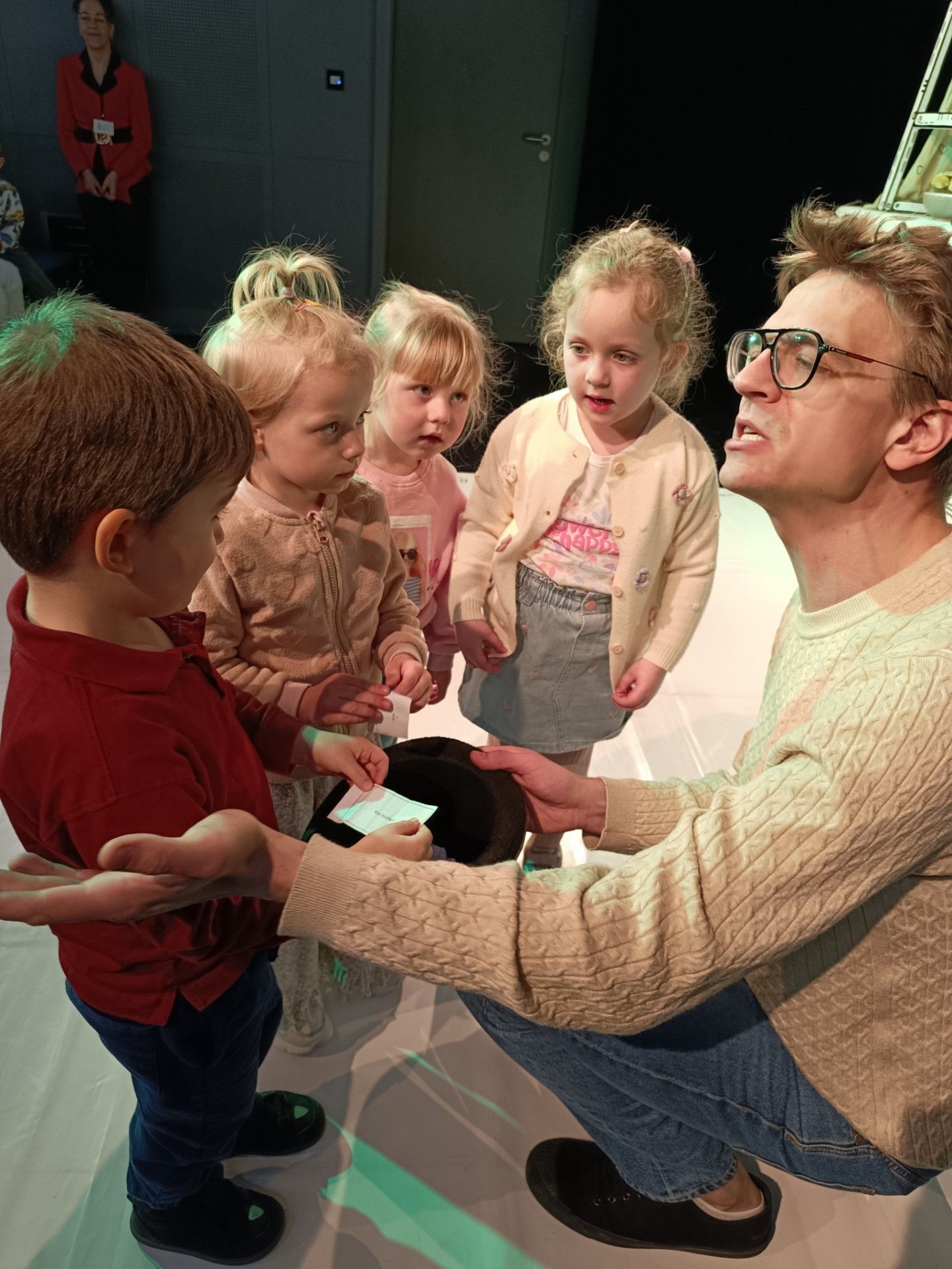 To był bardzo udany dzień, dość że słoneczny to jeszcze z wyjazdem do teatru do Kielc na spektakl "Pan Brzuchatek". Przedszkolaki z ogromną uwagą obejrzały spektakl. Dowiedzilismy się co takiego jest najważniejsze aby dom był prawdziwym ciepłym domem. W domu Pana Brzuchatka znalazło się miejsce dla Babci, Słonia, Szczura.... bo wszyscy mieszkańcy są tak samo wazni i wszyscy tworzą atmosferę rodzinnego, domowego ciepła. Po spektaklu uczestniczylismy w warsztatach teatralnych. Mieliśmy możliwość przenieść się w świat teatru i choć przez chwilę wcielić się w rolę aktorów. Wyjazd autokarem do Kielc był bardzo udany.